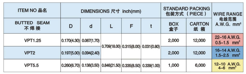 日本富士端子FUJI Terminal 連接器端子 平行端子 PVC絕緣平行端子 (VPT1.25)
