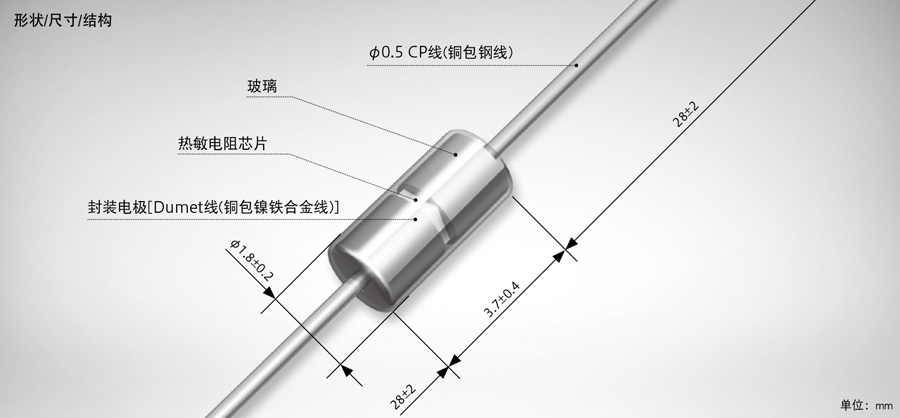 由于采用玻璃封裝、與樹脂封裝熱敏電阻相比、具有出色的耐熱和耐候條件性能、使用壽命更長(zhǎng)。